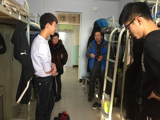 学生宿舍的走访活动中,老师们深入了解同学宿舍卫生、课程学习及用电安全等情况,并与同学们进行了愉快的交谈。王书记表示同学们在有困难时应及时找辅导员、班主任甚至学院领导,对学习、生活、科研有任何疑问时都可以找到相应的老师解答;同时叮嘱同学们到了冬天,要保持宿舍通风透气,加强身体锻炼,防止流行性疾病发生;王院长提示同学们一定要针对平时上课中的难点问题做好期末复习,考出理想成绩。