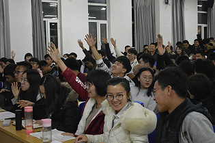 青年人要有青春梦、青春心、青春志。会上,王金彪老师通过亲身经历和自身的经验,让同学们了解、懂得当代青年的责任与担当,两个一百年奋斗大任就扛在当代青年身上,青年要懂得自己要做什么,该做什么,能做什么。为祖国复兴之路添砖加瓦。