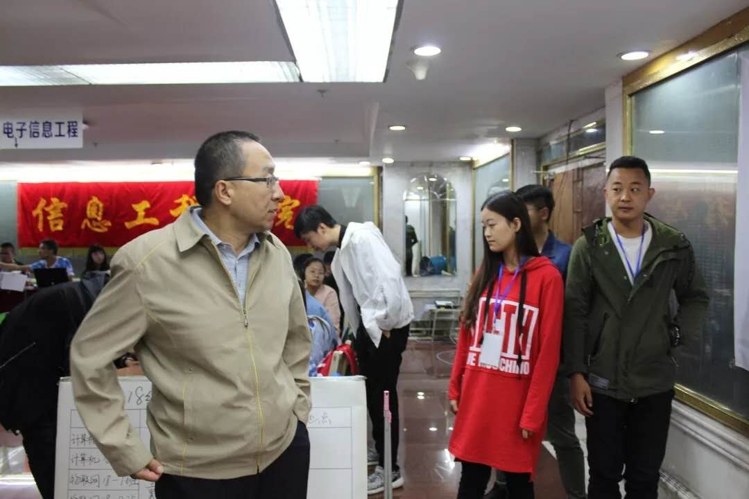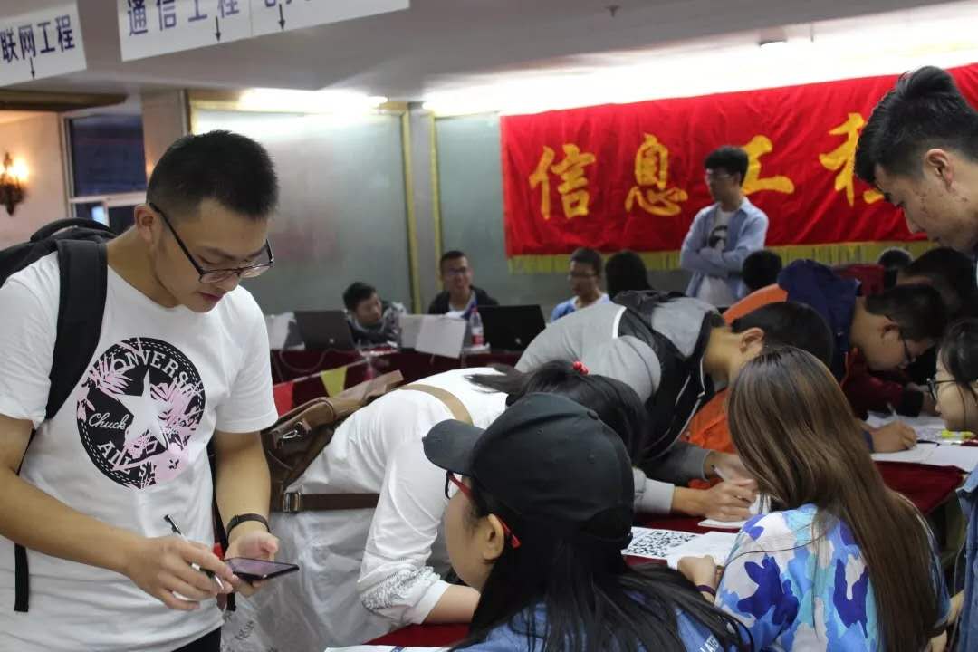 天青色等烟雨,而我们在等你。学院在9月4日召开了迎新工作会议,对即将到来的迎新工作进行了明确分工。学院各个学生组织积极参与配合,细分为小组,各司其职,吸取了上一届迎新工作的经验。在 9月8日早晨六点,学院各个组织已经投入紧凑而忙碌的准备工作之中。这也是迎新报道与接待工作可以顺利进行的一个重要因素。前台接待负责新生报到的志愿者们耐心地指导新生们了解报到流程,填写信息。学院服务点的志愿者们热心的参与到迎新工作,为新生指引道路,了解学校,细致的服务和亲切的问候给新来的同学带来了温暖。