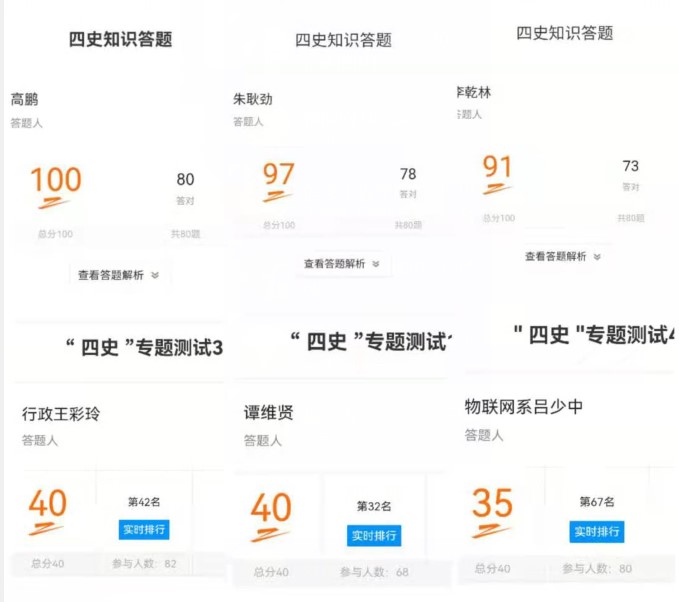 习近平总书记在党史学习教育动员大会上的讲话中强调,要在全社会广泛开展党史、新中国史、改革开放史、社会主义发展史的宣传教育。我院在2021年10月19日至28日积极开展师生线上“四史知识测试”活动。