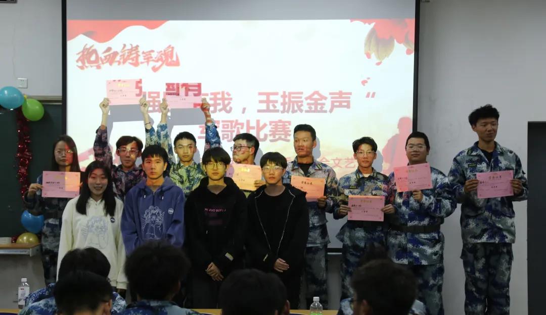 比赛中,各个班级雄姿英发,斗志昂扬。投入了全身心的热情,唱出了新时代大学生一心报国的精神以及军人保卫国家的豪情。希望新生继续努力,不要忘记祖国的在陪。在以后的学习和生活中发扬军人朴素和吃苦耐劳的精神。