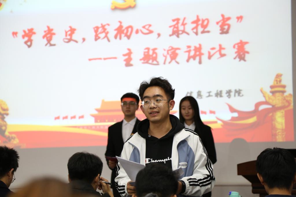 2021年10月19日,在“落霞与孤鹜齐飞,秋水共长天一色”秋日里,信息工程学院学生党支部举办了以“学党史,践初心,敢担当”主题演讲比赛。