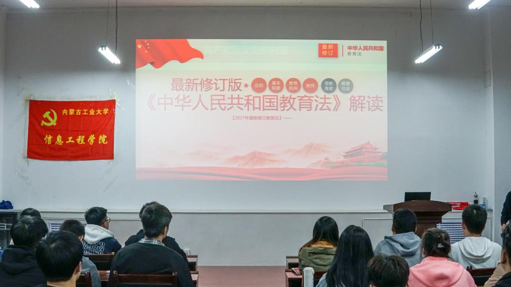 为创造良好的学校管理秩序、教育教学秩序和弘扬社会主义法治精神,开元网页版党委师生党员于2021年10月6日晚上7点在电力大楼十楼西配,集中学习2021年最新修订的《中华人民共和国教育法》
