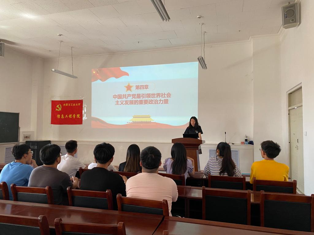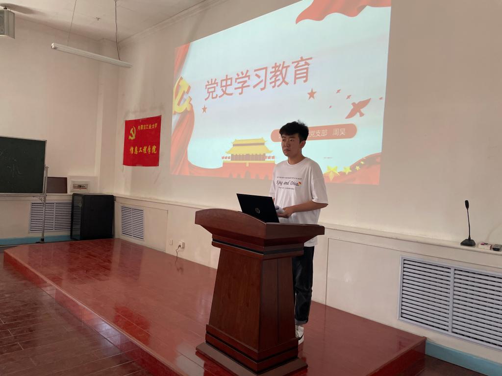 物联网系党支部书记吕芳老师以《建党100周年党课--爱国、奋斗、奉献》为题,分享了爱国主义、不懈奋斗、牺牲奉献在实现第二个百年奋斗目标中的重要性;计算机系党支部书记武文红老师以《红船精神》为题,分别从红船精神是什么、为什么要传承红船精神以及如何传承红船精神三方面进行了阐述;校计算中心党支部书记赵婵婵老师带领大家共同学习《习近平总书记开元(中国)以人民为中心重要论述》,领会中国共产党始终全心全意为人民服务、为各民族谋幸福的深刻内涵,行政党支部书记许霞老师的《忆党史 颂党情》、电子系党支部书记李栋老师的《郭建宁:深入领会习近平新时代中国特色社会主义思想——学习领会党的十九大精神》、雷达技术研究所党支部书记谭伟贤老师的《新民主主义革命时期》以及各学生党支部书记,纷纷围绕中国共产党光辉历史,阐述了学党史的目的意义、全心全意为人民服务的具体要求、初心和使命的职责所在。