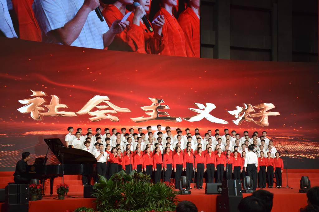 风雨苍黄百年路,高歌奋进新征程。今年是中国共产党成立100周年,也是内蒙古工业大学建校70周年。为庆祝党的百年华诞与建校70周年,6月26日,内蒙古工业大学于卓越文体馆特举办“颂歌献给党,奋进新时代”师生合唱比赛。我院师生代表107人参加并激情演唱《社会主义好》。