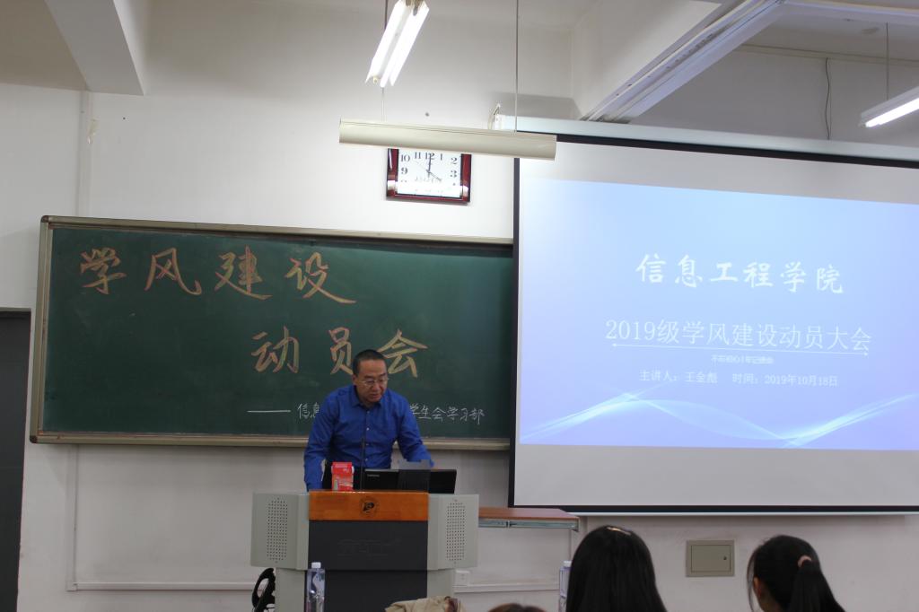 为深入贯彻落实全国教育大会和全国全省高校思想政治工作会议精神,进一步加强信息工程学院学风建设工作,高质量地实现人才培养目标,10月17日下午,信息工程学院在A辅201开展2019级学风建设动员会。学院副书记、副院长王金彪,团学办公室主任许霞老师、团委副书记赵智琦老师及2019级学生参加了本次会议。