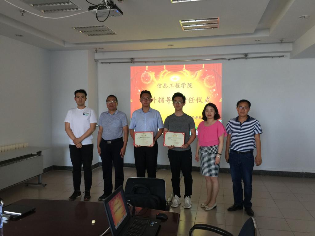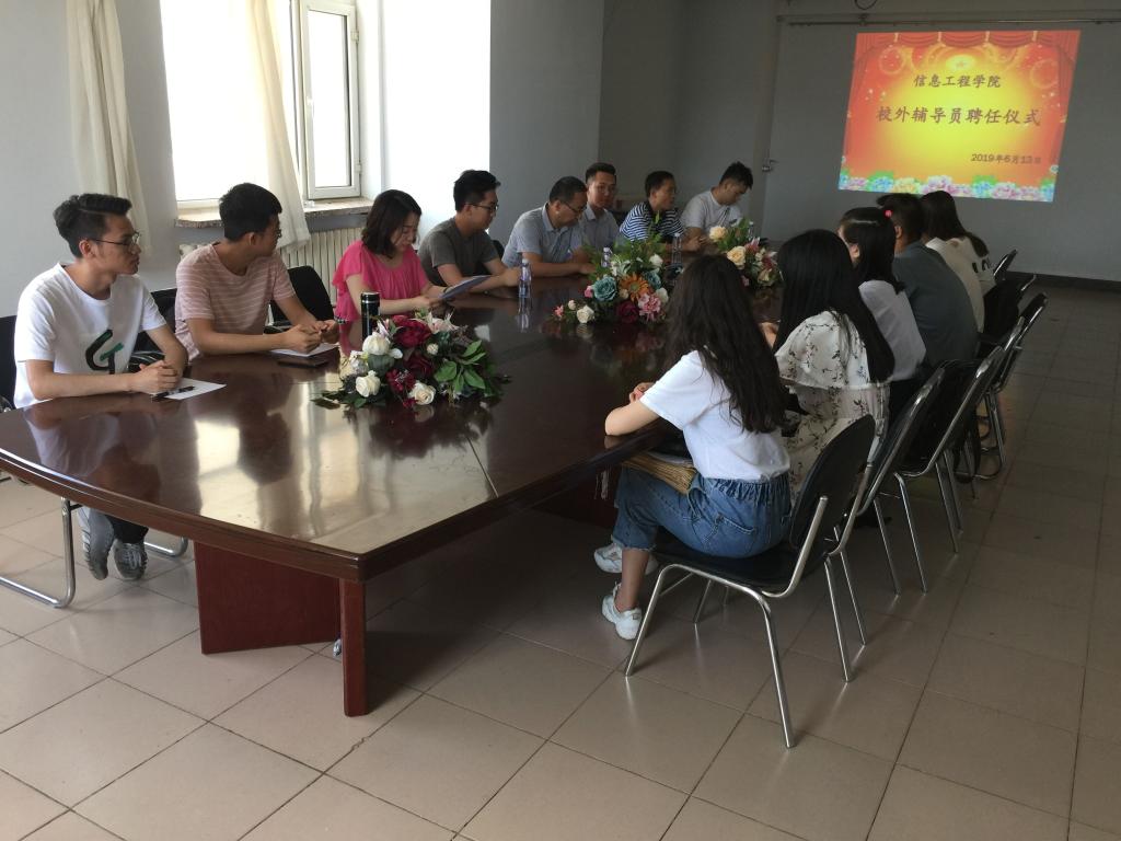 为营造全员、全方位育人的浓厚氛围,我院于6月13日下午在电力大楼0918会议室举行校外辅导员聘任仪式暨“助力成长”座谈会。我院16届毕业生、内蒙古自治区保密局翟鹤,17届毕业生、杭州海康威视数字技术股份有限公司呼和浩特分公司邹逸,信息工程学院副书记副院长王金彪、团学办公室全体辅导员以及学生干部代表参加了聘任仪式。会议由团学办公室主任许霞主持。