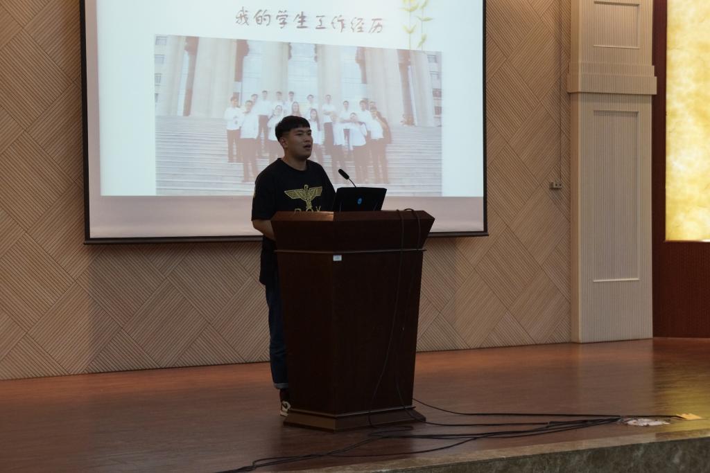 郑梓文同学分享了自己在部队的经历,让在场同学对“青春与国家”有了更深的理解;王世博同学则针对学生干部经历对于求职就业的积极影响做了分享;武星志同学就团队精神、自我认知、时间规划、换位思考四个方面进行经验交流;王一鸣同学分享了自己多重身份学生工作经历,用自己的实际行动证明了“时间挤一挤总会有”。高琴同学则鼓励在场学弟学妹多多尝试突破自我,科技创新、文艺比赛等方面各尽所长,充实自己的大学生活。