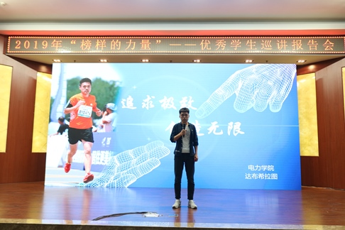 报告会分宣讲和答疑两个环节。首先外国语学院英语15-1班的仝亚茹就考研方面向同学们介绍自己经验,他讲到“当你遇到困难时,不要害怕它,只要你再坚持一下,你就可能遇到转机。”随后信息学院电子17-1的郑梓文同学,向同学们介绍了部队的故事,他说“让自己青春有些不平凡的经历,把青春压进枪膛,蓄力发射,我想,我们每个人都能够完善自己,成为自己的榜样!”接下来来自电力学院电气民15班的达布希拉图同学建议同学们在课余时间积极参加各种文体活动和科研比赛,不断提升个人能力,不负青春时光。来自材料科学与工程学院材16-3班的丛日原,与大家分享了他的学习过程与比赛经历等,为低年级同学树立良好的榜样,带动更多的同学参与到科技创新中来。最后来自建筑学院建14班的范云龙同学,希望同学们在大学中勇于担当,团结同学,做一个有益于集体的人。答疑环节,同学们积极提问,优秀学生代表做出耐心解答,大一同学们与宣讲员们互动激烈,现场气氛持续高涨。