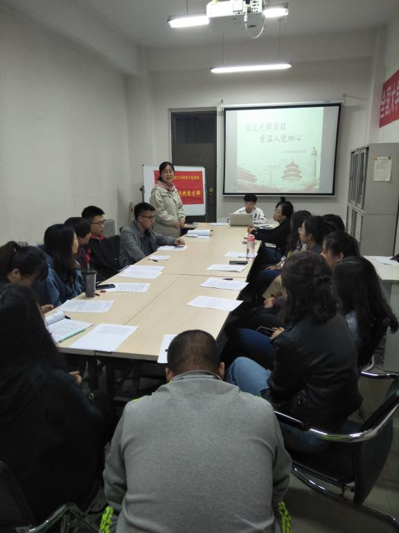 会议开始,支部书记带领大家重温入党誓词,同志们再一次感受到了入党誓词的庄严与肃穆,重温了自己的入党初心。随后,支部成员依次向大家分享自己所熟知的红色故事,赵一曼、刘胡兰、朱德等英雄的事迹,并把自己的心得体会与大家一起讨论,从党的革命历史中重温了入党初心、汲取了精神力量,今后学习工作中要充分发挥党员的先锋模范作用。