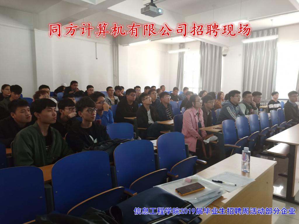 3月25日下午,我院2019届毕业生就业招聘周活动拉开帷幕。三月初以来,学院组织毕业生到各地集中完成毕业实习,月末大部分毕业生都已返校,但很多毕业生工作仍未落实。另外,还有一批考研结果不理想的同学也有就业打算,针对以上情况,学院领导研究决定邀请一些一直以来联系比较密切,岗位需求较大的企业来学院举行现场招聘会。受学院邀请,清华同方股份有限公司领导率先来学院招聘。