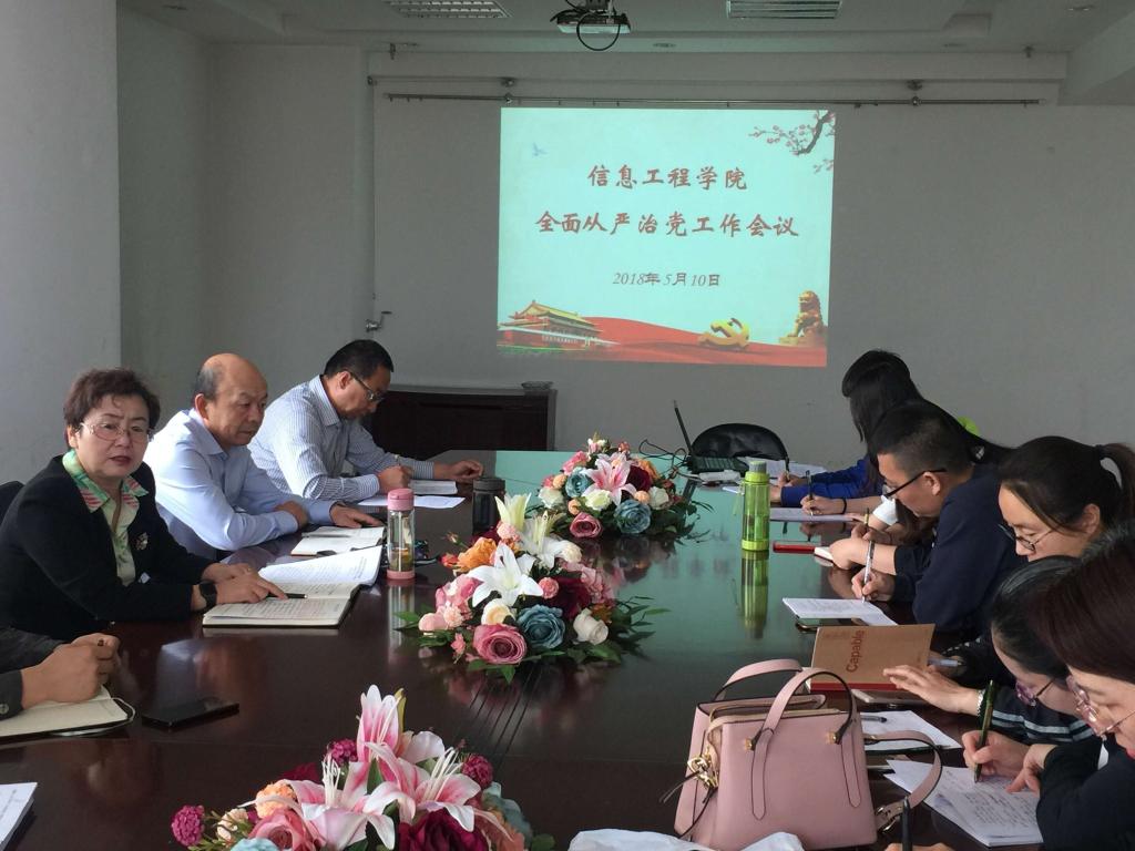 5月10日上午,我院在电力大楼0918会议室召开2018年全面从严治党工作会议。学院领导班子成员、各系部主任及各党支部委员参加会议。党委书记王彩玲主持会议。