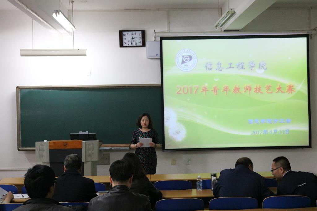 4月13日,我院2017年教学技艺大赛决赛在金川校区教D204举行。来自四个系、中心的七名青年教师参加了此次学院比赛。学院教学督导组专家赵俊生、高和亮及学术委员会主任房建东及中青年教授组成。院长李春明、副院长刘利民和来自各系部的教师代表观看了此次比赛。