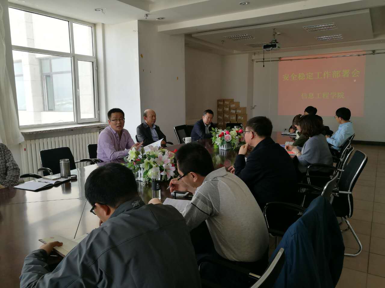 4月6日上午,我院召开安全稳定工作部署会,学院院领导和各系部负责人参加了会议。