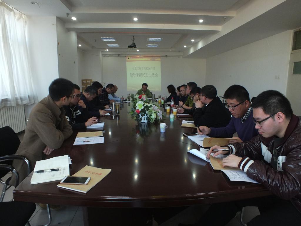 3月8日上午9:30,我院领导班子2016年度专题民主生活会在金川电力大楼918会议室召开。学院领导、党委委员、教工和学生党支部书记、工会主席参加会议。院党委书记彭建兵主持会议。