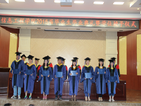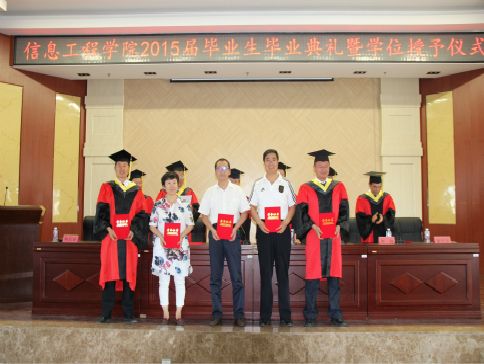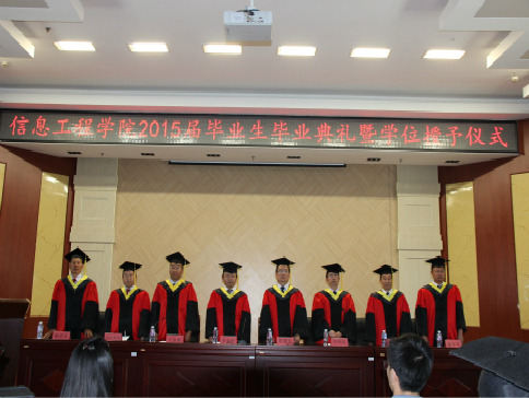 7月2日,信息工程学院2015届毕业典礼暨学位授予仪式在金川十楼报告厅隆重举行。全体院领导、学位分委员会委员出席毕业典礼。学院相关部门负责人、毕业班班主任及全体毕业生参加典礼。