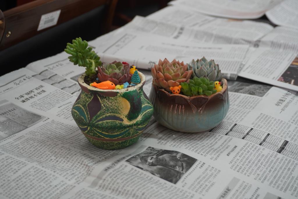活动中,老师为大家讲解多肉栽培养护知识、种植方法与步骤。女教工们热情参与,精心挑选多肉植物,搭配砂石和土壤,制作出一盆盆精美的多肉盆栽。