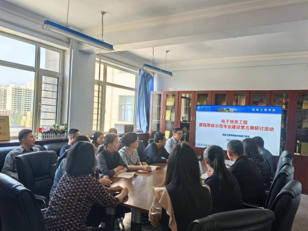 2024年9月26日,电子信息工程专业组织专任教师召开第五期课程思政教学研讨会议。为了挖掘专业课程思政育人功能,会议集中研讨体现“课程思政”的课程建设改革措施,明确将思政元素贯穿于专业教育课程的课程目标、教学内容、考核标准等各个方面,以课程建设改革促进思政示范专业建设,结合专业课程特色,合理嵌入育人要素,以润物无声的形式将正确的价值观传导给学生。